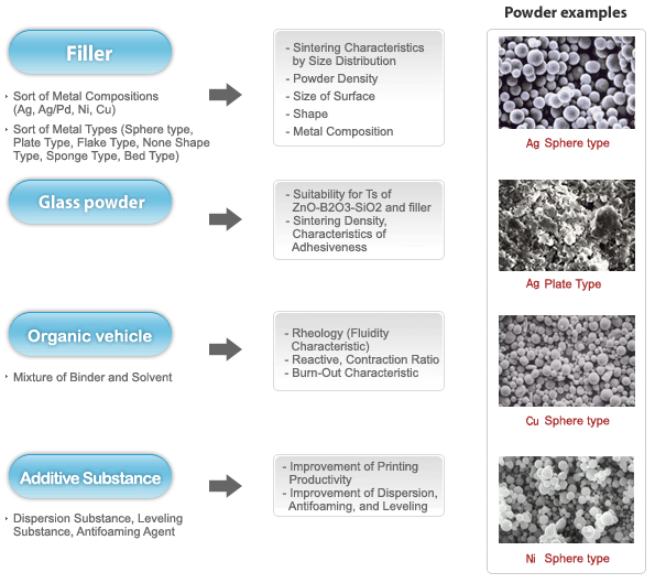 Technology for control of composition by Metal / Glass / Organic Vehicle / Additive |